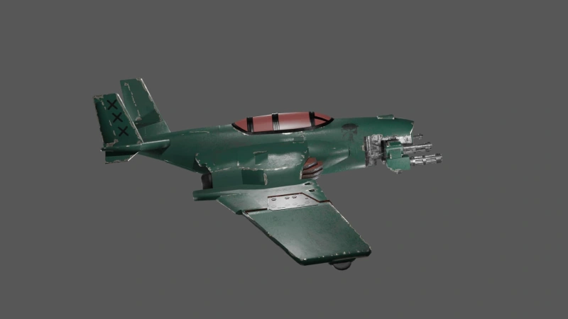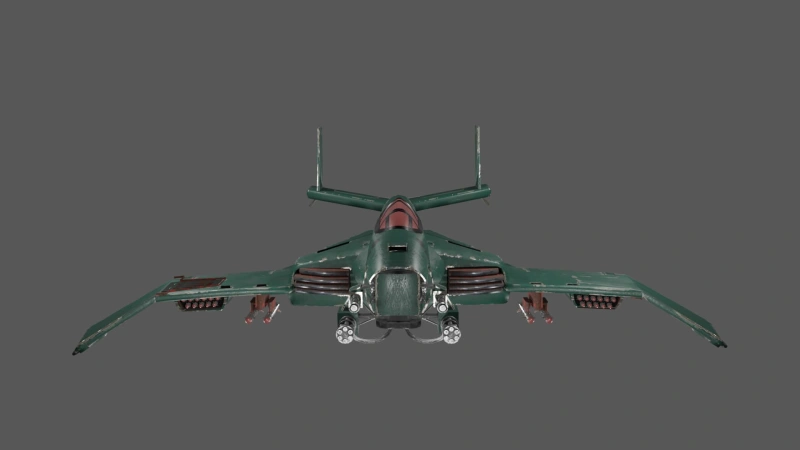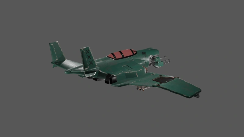 This low poly 3D aircraft model features a military design with a rugged, worn-out finish, showcasing powerful twin cannons, missile pods, and aerodynamic wings. Built for game environments and real-time rendering. Ideal for use in game development, animation, and virtual world building.