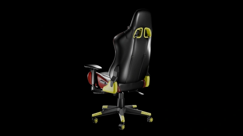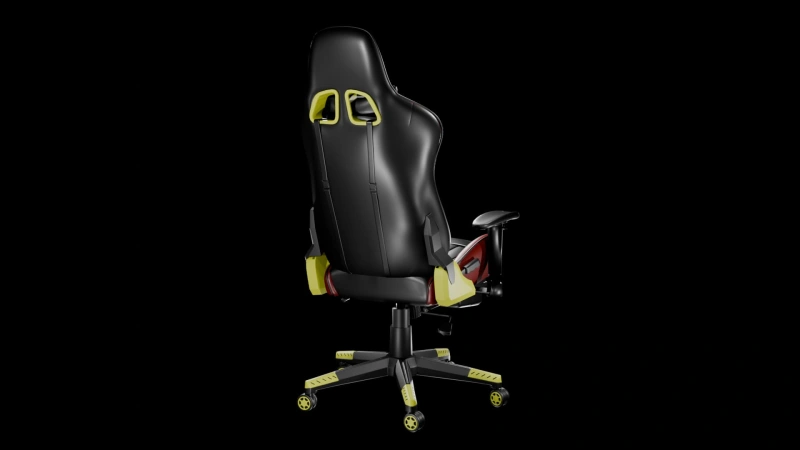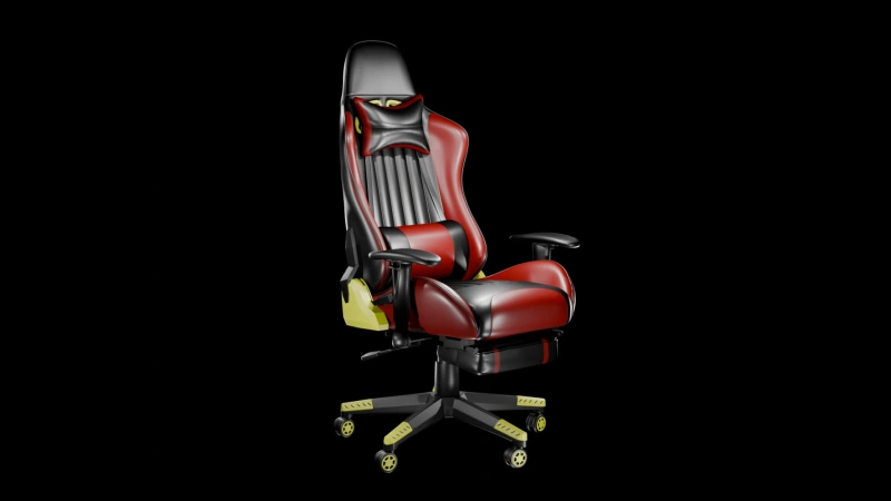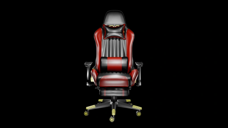 Ergonomic Gaming Chair 3D Model – A high-quality, detailed model featuring a bold red-and-black design with cushioned support, adjustable armrests, and realistic textures. Ideal for gaming room renders, product visualization, or virtual setups.
