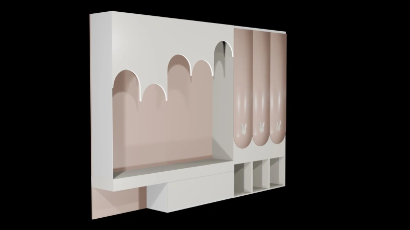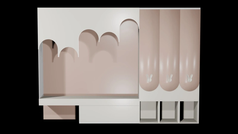 Delightfully designed for young dreamers, this 3D model of a study table is the perfect blend of playful charm and practical organization. The pastel pink and cream color scheme creates a soft, calm environment ideal for studying, reading, and creative expression.