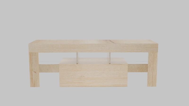 This 3D bookshelf / TV cabinet features a sleek and modern design with a light wood finish. It includes open glass shelves on one side for display. Perfect for organizing books, decor, or media devices in a clean and stylish way.