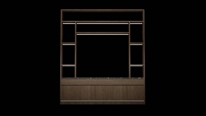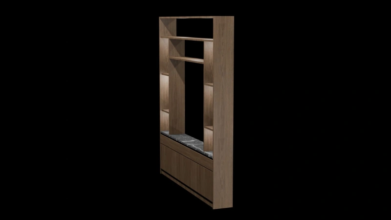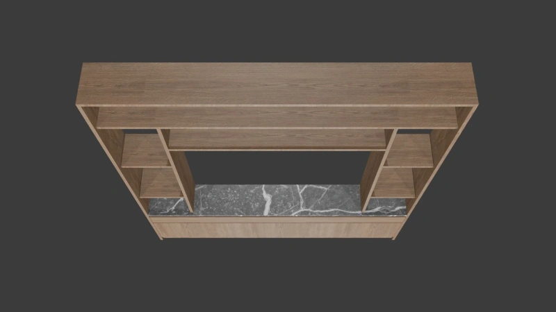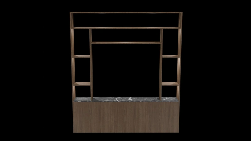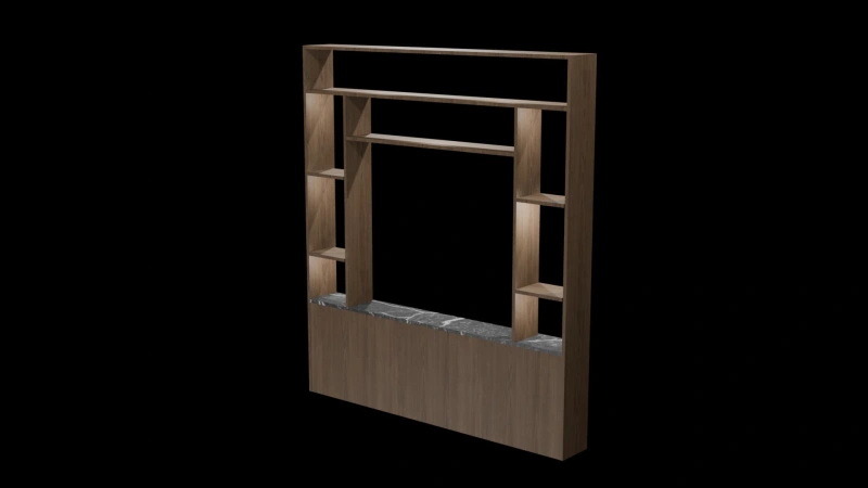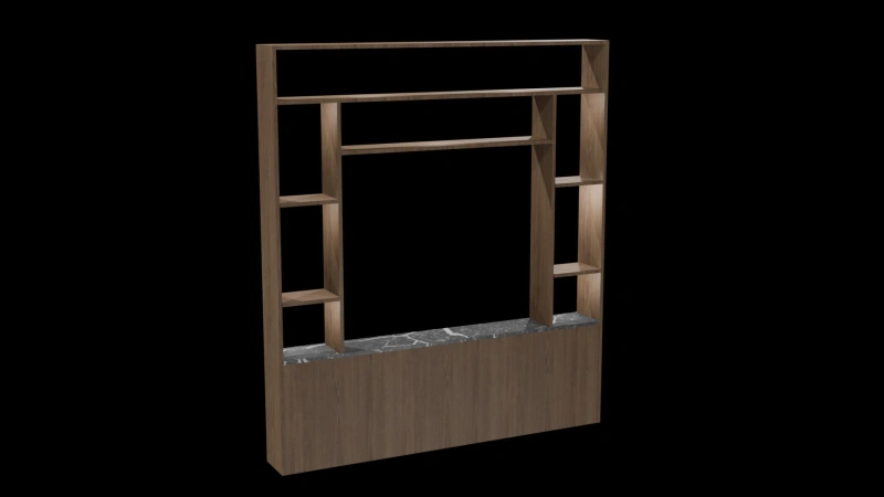 Add structure and style to any space with this sleek, contemporary 3D partition shelf. Crafted with a rich wooden frame and a luxurious marble-textured base, this design balances function with aesthetics. The open shelving layout offers versatile display options, making it ideal for modern interiors in homes, offices, or hospitality settings.