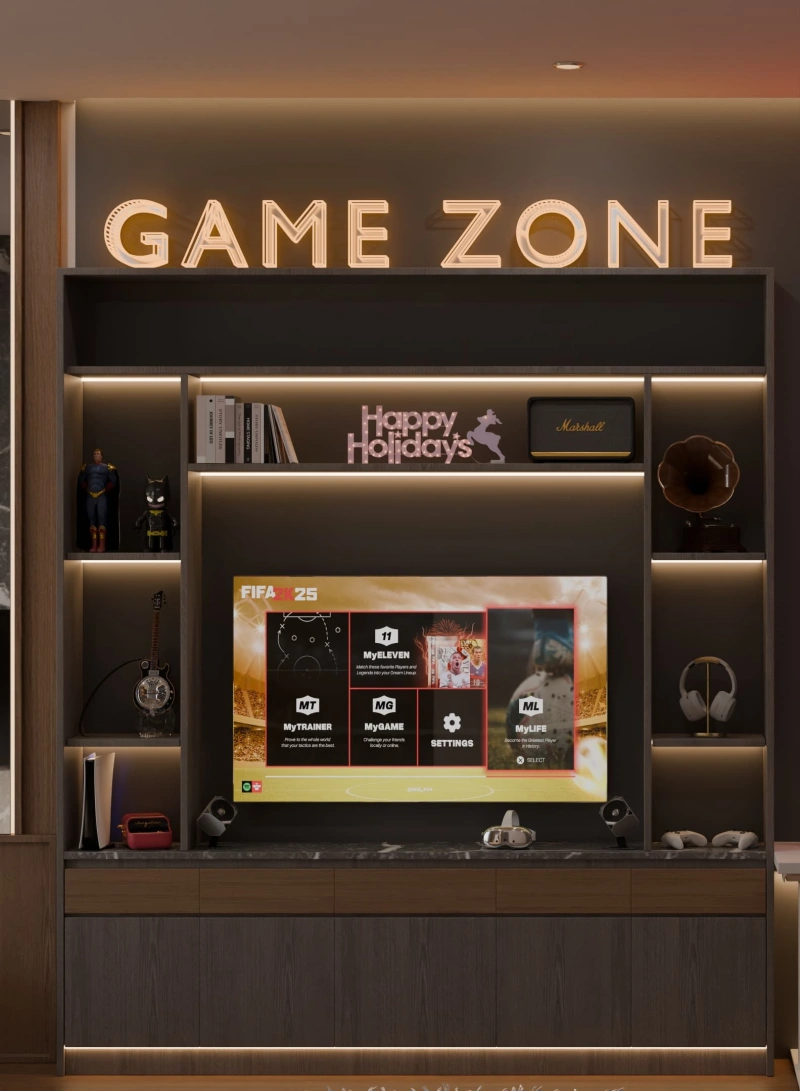 This model comes with the flexibility to include or remove integrated LED strip lighting—allowing you to tailor the mood and look of your scene. Use the LED version for a more dynamic, ambient effect, or go minimalist with the clean wood-only design.